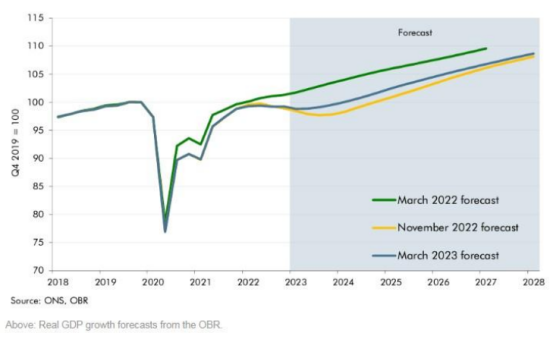 图:来自英国预算责任署(OBR)的实际GDP增长预测