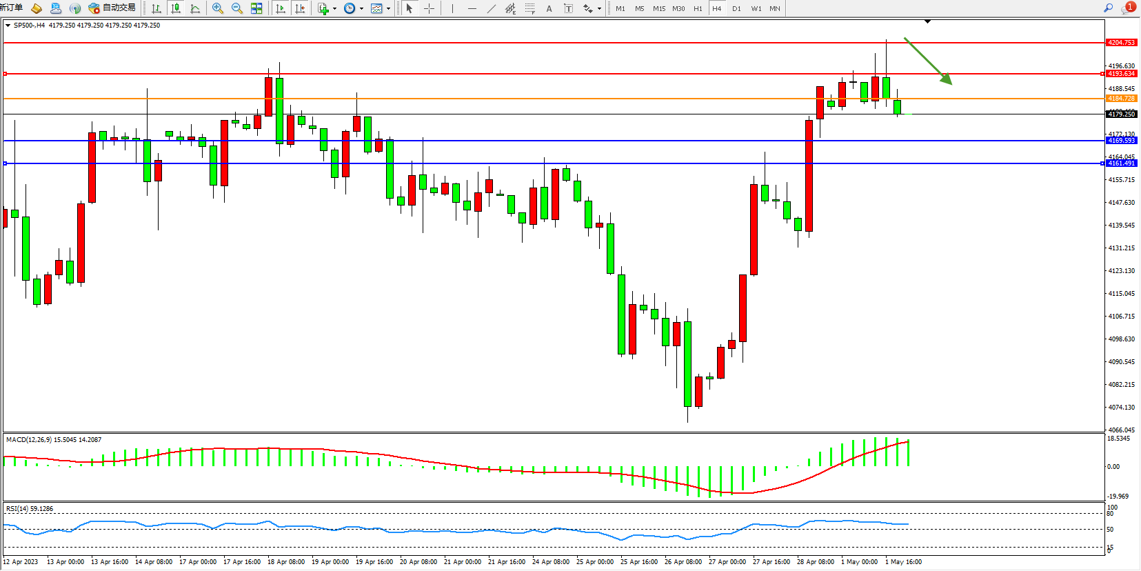 标普SP500——4小时K线图显示: