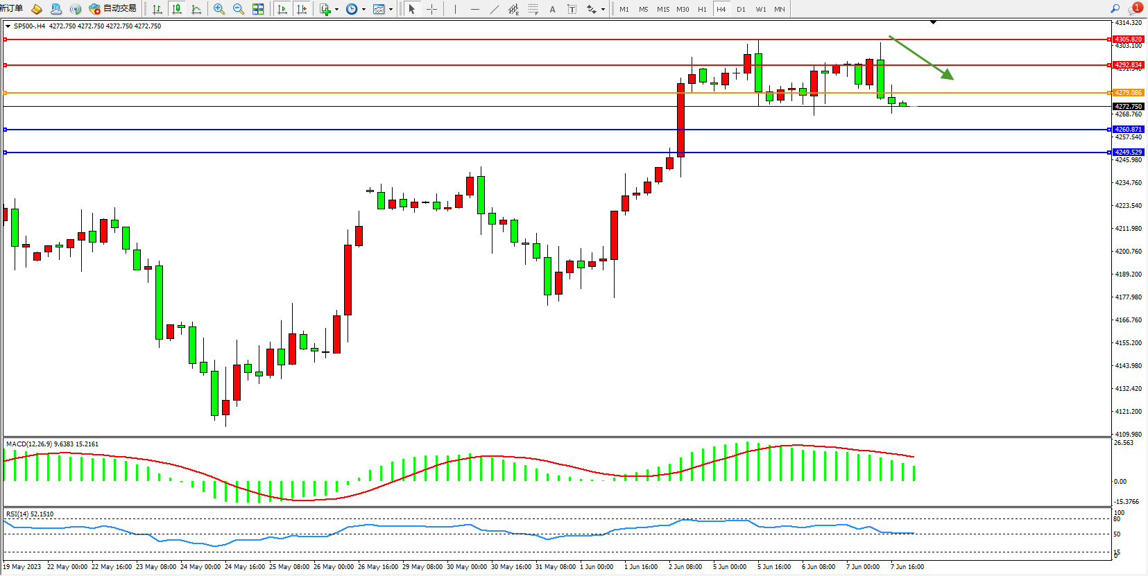 标普SP500——4小时K线图显示: