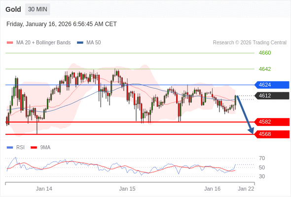 在 4624 之下,看跌,目标价位为 4582 ,然后为 4568 。